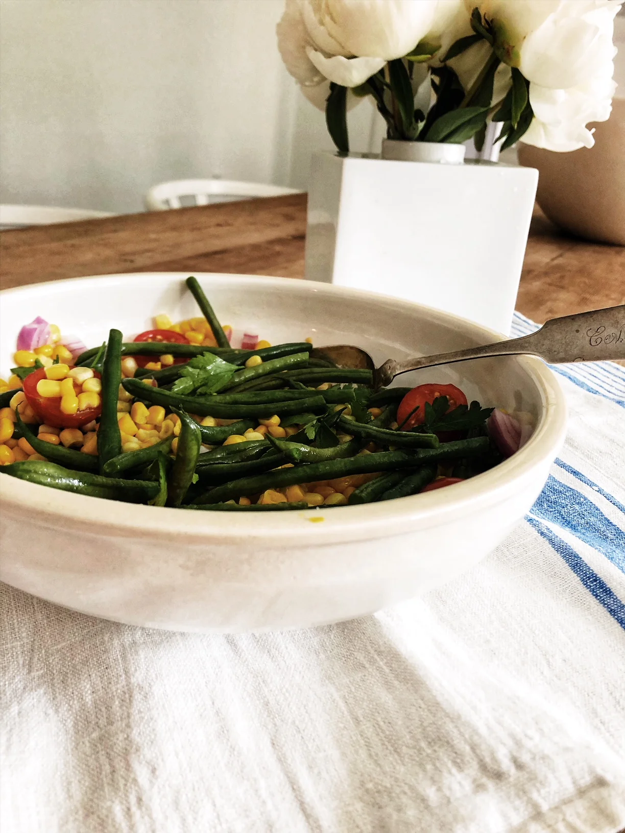 The perfect salad for a picnic with all ingredients available or about to be at your local farmers market.